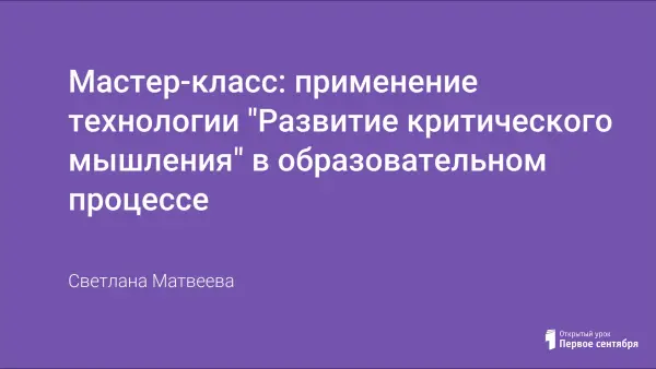 Мастер-класс: применение технологии "Развитие критического мышления" в образовательном процессе
