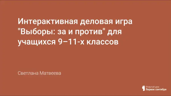 Интерактивная деловая игра "Выборы: за и против" для учащихся 9–11-х классов