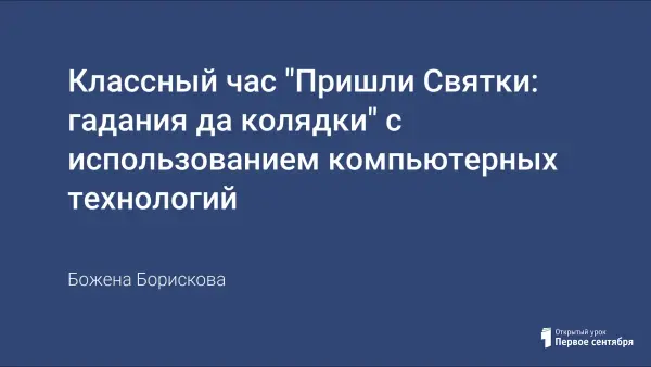 Это внеклассное мероприятие расширяет знания учащихся по истории русских народных праздников, знакомит со святочными традициями и обычаями народа. Использование компьютерной презентации позволило сделать занятие ярким, эмоциональным, запоминающимся. Оно заинтересовало детей, вызвало интерес к культурному наследию русского народа.