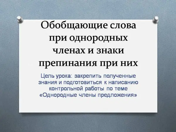 Урок русского языка по теме "Обобщающие слова при однородных членах предложения и знаки препинания". 8-й класс