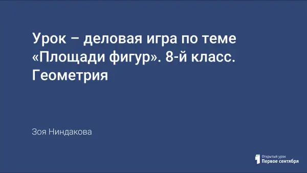 Урок геометрии с мультимедийным проектором, так как выполнен в виде презентации с приложением PowerPoint. Урок имеет практическую направленность с элементами исследования и показывает применение темы «Площади» на практике, проверяет полноту и осознанность знаний учащихся.