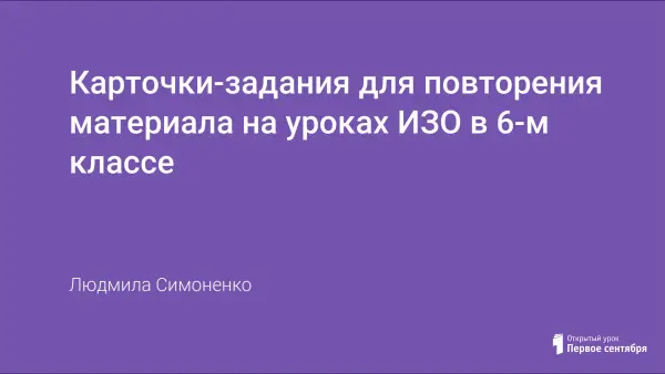 Программа по изобразительному искусству очень насыщена. За время урока учителю нужно успеть многое: поделиться с учащимися своими переживаниями материала урока, вовлечь ребят в сопереживание, организовать их работу, проверить усвоение материала и поставить оценки. Предлагаемые карточки могут быть использованы на уроках ИЗО в 6-м классе в качестве тестовых заданий для повторения материала и закрепления знаний.