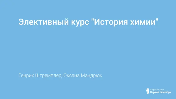 Разработан элективный курс "История химии". Данный курс может быть предпрофильным, профильным и модульным. Теоретической базой курса служат химия и история. К элективному курсу "История химии" разработан учебник и программа. Имеются методические указания для проведения элективного курса. Дан список литературы для учителей, для учащихся, для составления программы элективного курса.