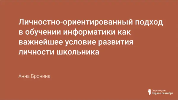 Личностно-ориентированный подход в обучении информатики как важнейшее условие развития личности школьника. В статье представлена табличная и графическая модели личностно ориентированного урока информатики. В качестве примера предлагается урок по созданию анимационных проектов в среде объектно-ориентированного языка программирования Visual Basic.