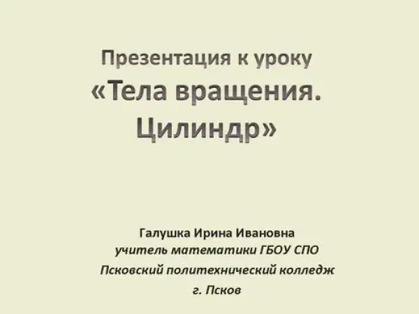 Урок математики по теме "Тела вращения. Цилиндр"