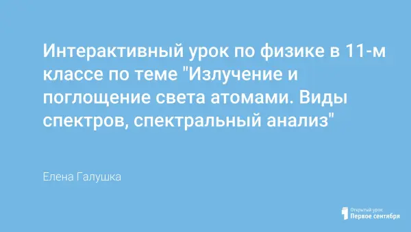 Представлен конспект урока-лекции и мультимедийная презентация учителя. Презентация, демонстрируемая в ходе урока, позволяет сделать наглядным процесс излучения и поглощения света, выявить природу различных видов свечения, разобраться в природе линейчатых, полосатых и сплошных спектров и в методе проведения спектрального анализа. Урок включает задания для самостоятельной работы на шесть вариантов.
