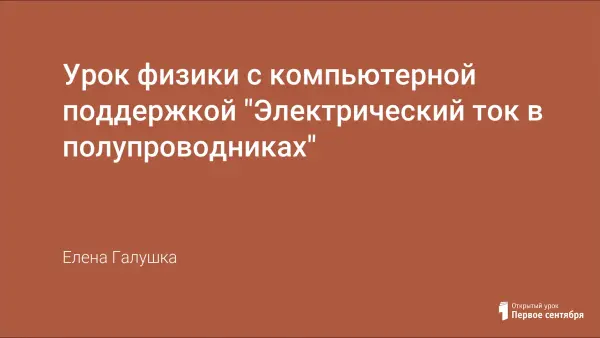 Конспект урока по учебнику Г.Я. Мякишева в 10-м классе основной школы по теме «Электрический ток в полупроводниках» и мультимедийная презентация к уроку. К уроку представлены анимированные модели, позволяющие лучше разобраться в механизме проводимости полупроводников.