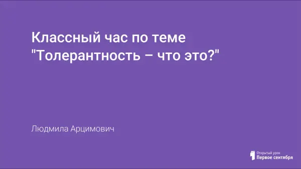 Толерантность – достаточно абстрактное понятие, сложное для наблюдения и измерения научными методами. Толерантность предполагает готовность принять других такими, какие они есть и взаимодействовать с ними на основе согласия без ущемления собственных интересов. Данный классный час можно провести в 5-м классе, в начале учебного года, как ознакомительный с понятием «толерантность» и сделать понятие «толерантность» близким и ясным для каждого участника.