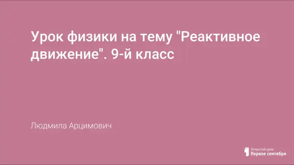 Цели урока: познакомить с понятием «реактивное движение»; познакомить учащихся с практическим применением закона сохранения импульса; развивать творческие способности и познавательные интересы; привить интерес к физике.