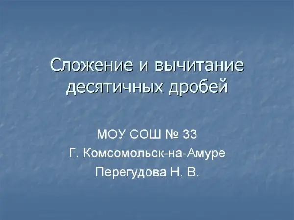 Сложение и вычитание десятичных дробей