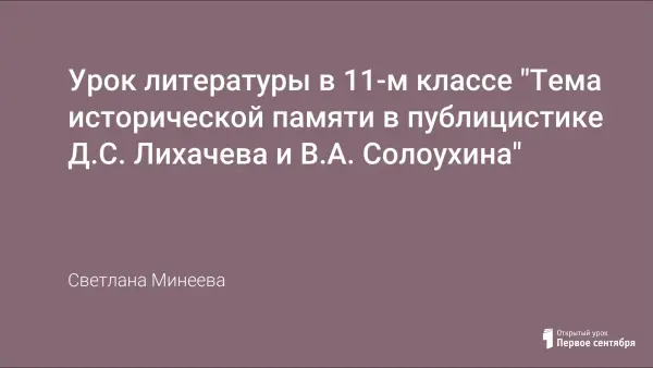 Публицистика Д.Лихачева и В.Солоухина призывает к борьбе за русскую культуру, за сохранение "исторической памяти", за человеческие души. Рассказывая о разрушении национальной культуры, авторы едины во мнении: рубя свои корни, люди заполняют душевный вакуум культурой иноземной; надо помочь открыть в себе любовь к малой родине, которая перерастет в любовь к Отечеству.