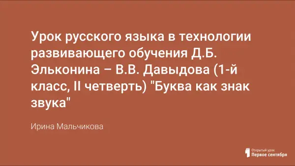 Данный урок является первым в теме "Формирование действий чтения и письма". Этот урок постановки учебной задачи составлен с учётом принципов развивающего обучения. Он включает и предусматривает знакомство с буквой как значком для обозначения звука, предпосылками появления буквенного письма. Развивает творческие способности учащихся и навыки парной работы.