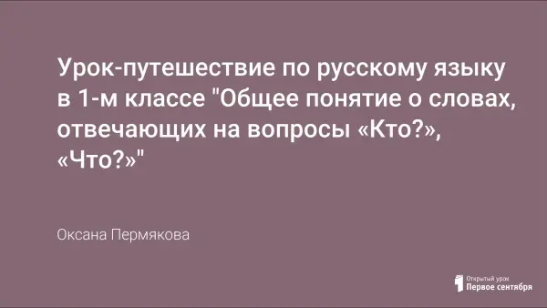 Урок-путешествие помогает создать условия для первичного знакомства с именем существительным и расширить кругозор учащихся. Детям предлагаются разного вида задания для изучения и закрепления полученного знания. Грамотно построенная работа на уроке развивает речь, мышление, воображение, формирует у учащихся умение выразительно читать, развивает творческие способности детей.