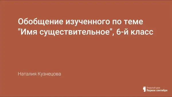 Цели урока: обобщение и систематизация изученного по теме "Имя существительное"; формирование языковой и речевой компетенций; совершенствование практических навыков в определении основных признаков данной части речи; воспитание любви к русскому языку.