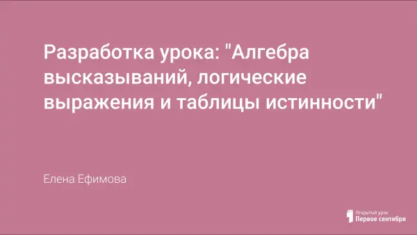 Представлен конспект урока "Алгебра высказываний. Логические выражения и таблицы истинности".