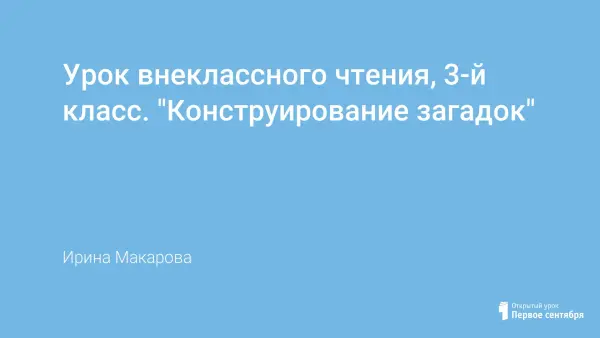 Представлен конспект урока по внеклассному чтению в 3-м классе по теме "Конструирование загадок".