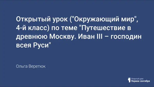 Изучение курса истории в начальных классах, по мнению специалистов, вызывает некоторую трудность, так как учащимся бывает сложно сориентироваться в исторической информации, носителями которой являются предметы материальной культуры, исторические тексты, карты, хронологические таблицы, архитектурные памятники. Цель данного урока: знакомство с личностью Ивана III и углубление знаний об истории Московского Кремля.