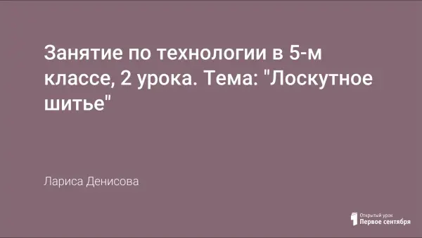 Цель урока: познакомить обучающихся с одним из видов декоративно-прикладного творчества – лоскутным шитьем.