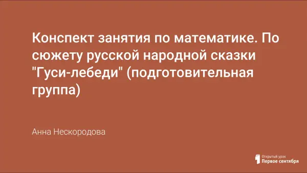 Занятие по программе Л.Г. Петерсон проводилось на заключительном этапе работы по пособию «Раз – ступенька, два – ступенька», когда дети владеют составом числа, умеют выполнять арифметические действия со знаками «+» и «–» в пределах первого десятка, научились сравнивать предметы по форме, цвету и размеру. Цель занятия – развитие у дошкольников познавательных способностей, формирование умений применять знания на практике. Воспитательный аспект урока – прийти на помощь попавшему в беду герою сказки.