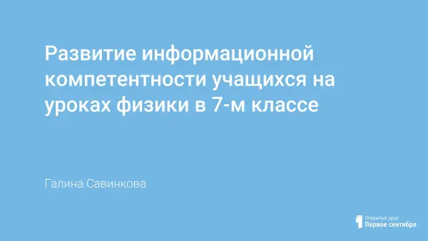 В работе описана система работы учителя по формированию информационной компетентности учащихся на уроках физики в седьмом классе.