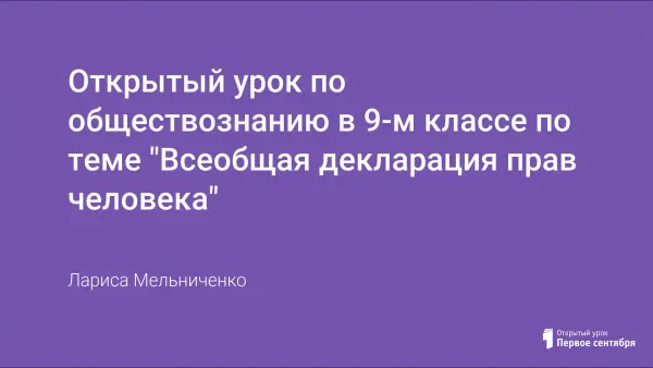 Представленный урок - один из уроков по вопросам права. Основным объектом изучения данного занятия является "Всеобщая декларация прав человека". Главная задача урока - на основе общего знакомства с содержанием декларации, первоначального усвоения ряда ее положений пробудить у школьников отношение к этому правовому документу как к особой социальной и личной ценности.