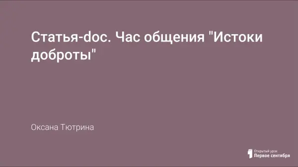 Предлагаем вашему вниманию материал для классного часа "Истоки доброты". Цель занятия – развитие психологической наблюдательности и умения видеть в другом человеке хорошее;