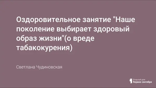 Оздоровительное занятие в 1-м классе о вреде табакокурения способствует сохранению и укреплению здоровья. Оздоровительные паузы могут включаться в структуру других занятий, использоваться в свободной деятельности детей.