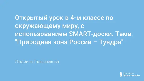 Представлен конспект открытого урока в 4-м классе по окружающему миру с использованием smart-доски. Тема "Природная зона России - тундра".