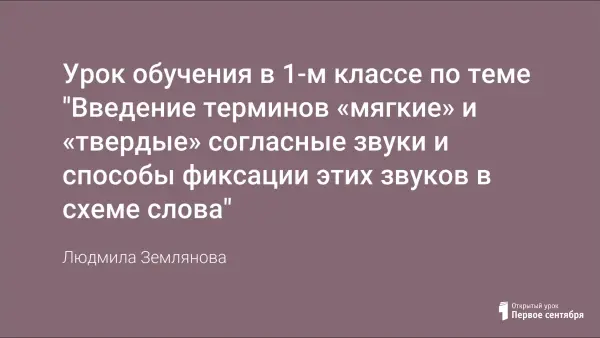 Урок обучения грамоте в 1-м классе проводится по букварю Д.Б. Эльконина. На данном уроке вводятся термины «мягкие» и «твёрдые» согласные звуки и способы фиксации этих звуков в схеме слова.