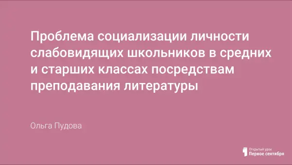 Учителю литературы, работающему со слабовидящими детьми, необходимо представлять особенности методологии предмета литературы в коррекционной школе. Главная задача учителя - помочь слабовидящему ребенку через уроки литературы активно познать социальную действительность, создать условия для его наиболее полной самореализации в обществе.