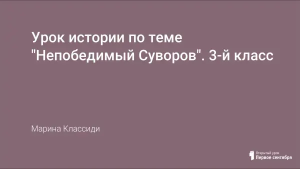 На уроке дети знакомятся с выдающимся полководцем русской истории – А.В. Суворовым, его жизнью, деятельностью и военными подвигами. У ребят воспитывается интерес к военной профессии. Предлагаются презентация и тест.