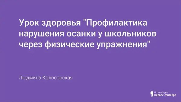 Урок здоровья в 3-м классе проведен в форме путешествия по стране "Правильная осанка". Целью урока является формирование у учащихся знаний о правильной осанке и умений выполнять комплекс упражнений для ее профилактики.