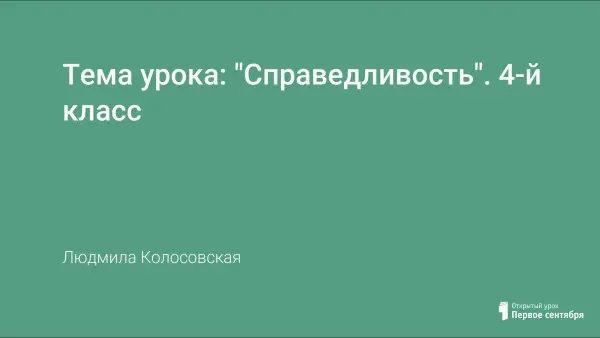 Урок направлен на формирование у учащихся представлений о справедливости как категории этики, регулирующей нравственное поведение. Ученики приходят к выводу, что совершая несправедливые поступки, человек теряет способность правильно оценивать себя, тем самым он оказывается неспособным увидеть свои нравственные недостатки и не может их исправить.