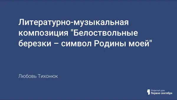 Литературно-музыкальная композиция разработана для учащихся средних и старших классов. Дерево береза не случайно взято за основу мероприятия. Во-первых, наш родной поселок называется Березово, его еще называют на исторический манер "Град Березов", а во-вторых, когда проводился данный праздник Березовский район отмечал свой юбилей. А самое ценное в этом мероприятии то, что стихи, написанные детьми о березах и родном Березове, были включены в канву сценария.