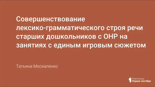 Данная работа посвящена проблемам формирования лексико-грамматических средств речи у детей старшего дошкольного возраста с ОНР. Представлен конспект логопедического занятия-развлечения «Ярмарка слов» как один из вариантов работы по закреплению и введению в самостоятельную речь ребенка-логопата сформированных лексических форм и грамматических категорий. Игровая форма занятия с единым сказочным сюжетом позволяет детям быстро и полно усваивать необходимые знания.