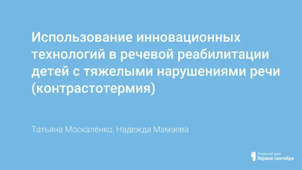 Использование инновационных технологий в речевой реабилитации детей с тяжелыми нарушениями речи (контрастотермия)