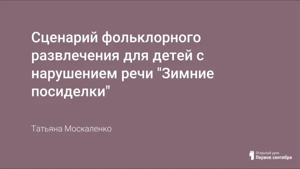 Мероприятие организовано для детей, имеющих нарушение речи, и их родителей в рамках программы по приобщению дошкольников к истокам русской народной культуры. Фольклорный материал является источником богатейшего речевого материала, отвечающего всем требованиям литературного языка. Речевой материал доступен в произносительном плане, прост по звуковому составу слова, что способствует восприятию его детьми радостно и с удовольствием.