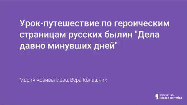 Урок-путешествие по героическим страницам русских былин "Дела давно минувших дней"