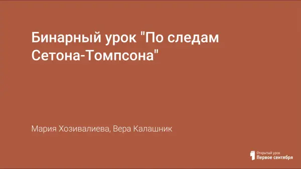 Урок основан на рассказах Сетона-Томпсона «Лобо», «Медвежонок Джонни», «Арно» и повести «Домино». При подготовке к уроку учащиеся используют материал о жизни волка и лисы в дикой природе, о многообразии подвидов медведей и о разведении человеком голубей. Учащиеся знакомятся с личностью и творчеством натуралиста, художника и писателя Сетона-Томпсона, понимают важность наблюдения за животным миром.
