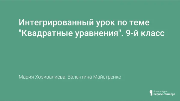 Урок алгебры проводился в читальном зале при наличии мультимедийного проектора и демонстрационного экрана. Понятия, рассматриваемые на уроке, обобщают тему " Квадратные уравнения". В процессе изучения темы использовались наглядные и исследовательские методы. Урок развивает информационные, коммуникативные и исследовательские ключевые компетенции.