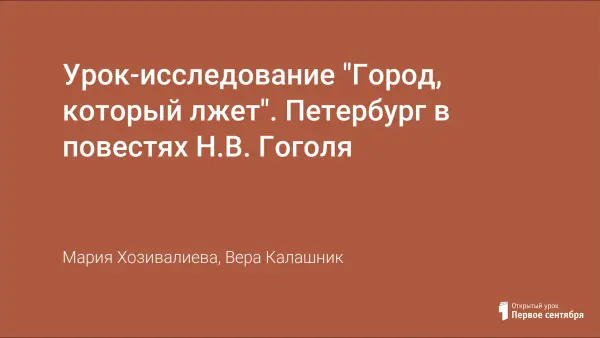 Урок-исследование "Город, который лжет". Петербург в повестях Н.В. Гоголя