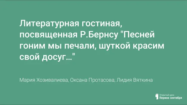 Внеклассное мероприятие для 9–11-х классов посвящено творчеству великого шотландского поэта Р.Бернса. Цели: повышение культурного и познавательного уровней учащихся, формирование социокультурной компетенции. Ребята сами выступают в роли ведущих, читают стихотворения на английском и русском языках, исполняют песни, аккомпанируя на гитаре и фортепиано.