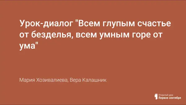 Подумаем, кто из героев комедии умён, а кто глуп. Почему никто из героев не добивается своих целей? И если главное в комедии - проблема обретения счастья, то становиться понятно, почему ум не помогает героям, почему от ума лишь горе. «Ум с сердцем не в ладу». Для достижения счастья мало ума и сердца, главное - привести их в состояние гармонии. Гармония - вот условие для достижения счастья.