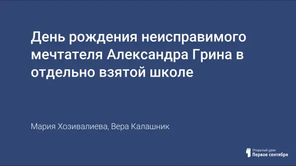 День рождения неисправимого мечтателя Александра Грина в отдельно взятой школе