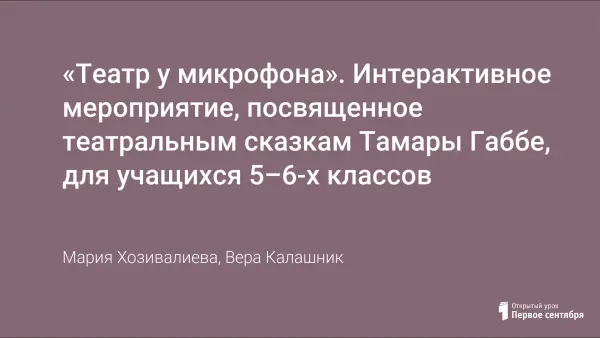 «Театр у микрофона». Интерактивное мероприятие, посвященное театральным сказкам Тамары Габбе, для учащихся 5–6-х классов