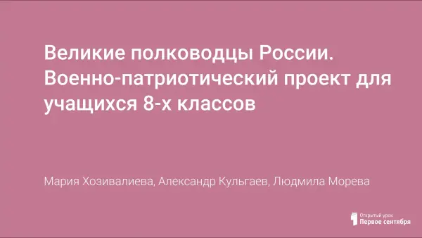 Задача проекта – широкое освещение жизни и подвигов полководцев А.Невского, Д.Донского, Суворова А.В., Кутузова М.И., Ушакова Ф.Ф., Нахимова П.С. в литературе и искусстве, проследить их связи с нашим краем.