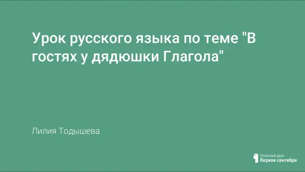 Урок русского языка "В гостях у дядюшки Глагола" разработан по программе М.М. Разумовской для учащихся 5-го класса. Данный урок призван обобщить и систематизировать знания о глаголе как части речи, полученные учащимися в начальной школе. Для повышения познавательной активности школьников и развития интереса к предмету применяется игровая технология.