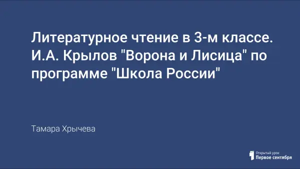В разработке представлено применение ИКТ на уроке литературного чтения в 3-м классе. На уроке учитель учит определять басню как жанр литературы по характерным признакам, находить мораль в произведении.