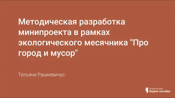 Данная разработка позволяет проанализировать влияние отходов на окружающую среду; развить критическое отношение у учащихся к результатам деятельности человека; сформировать личную ответственность за состояние окружающей среды; ознакомить учащихся с различными способами утилизации мусора.