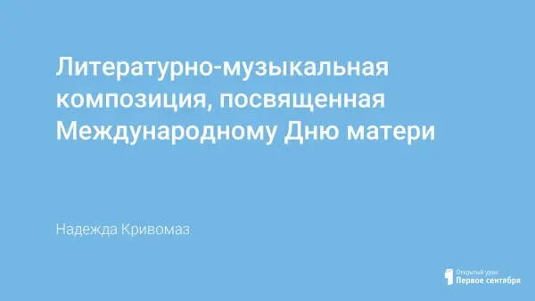 Представлен конспект литературно-музыкальной композиции, посвященной Международному Дню матери.